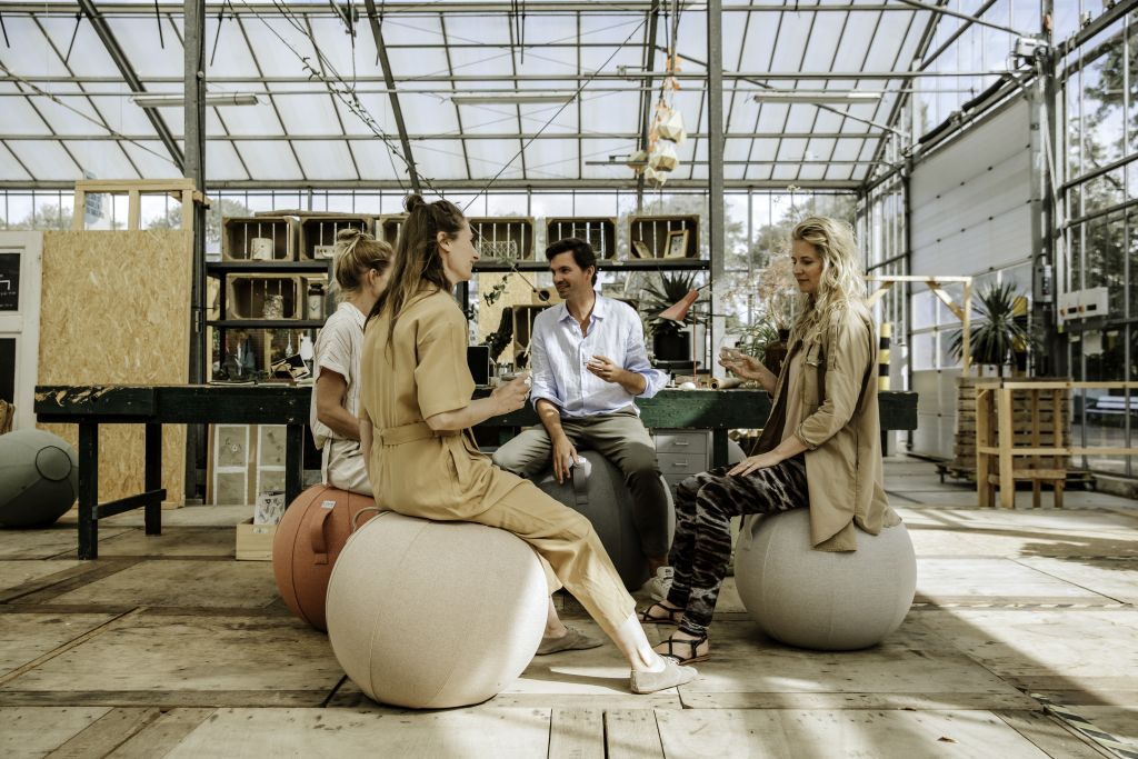 VLUV est un ballon d'assise sain et élégant. Sa conception ergonomique vous permet de vous asseoir droit et confortablement pendant que vous traitez vos e-mails. Utilisez VLUV pour vos exercices d'équilibre ou comme siège d'appoint dans votre salon. Il est équipé d'un ballon intérieur en PVC très résistant, sans coutures et sans Pht. Son design épuré et ses tissus de haute qualité en font un véritable accroche-regard dans votre intérieur.