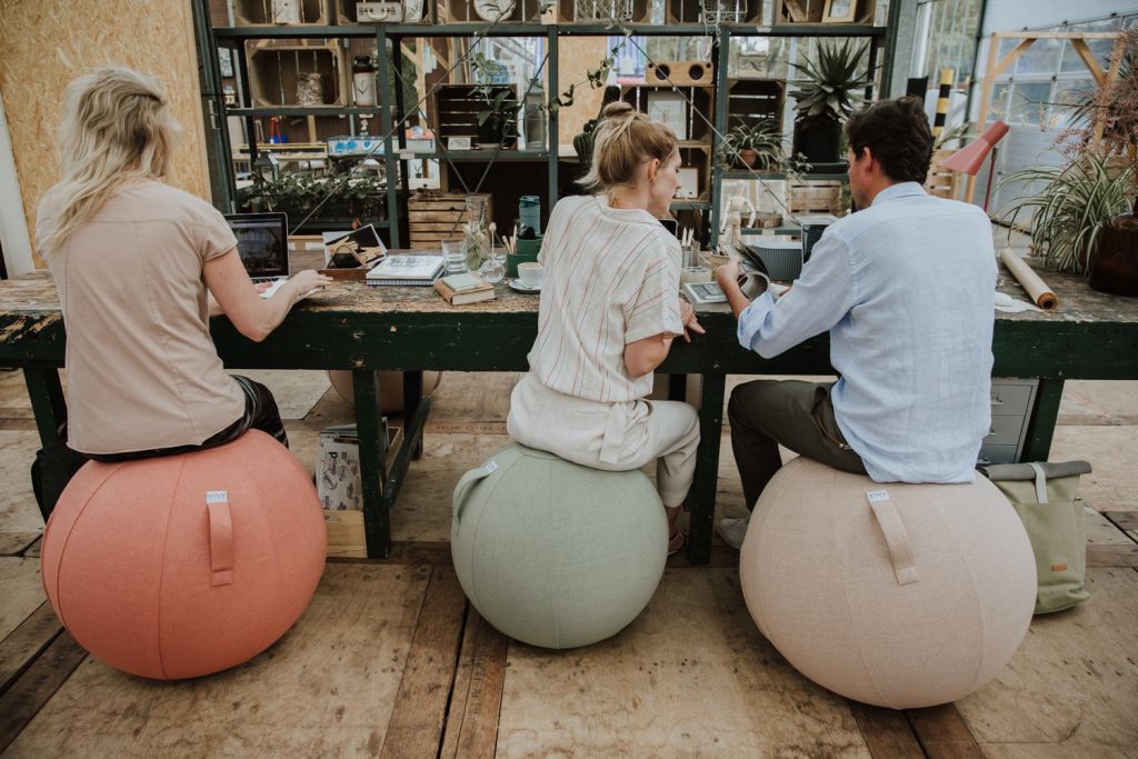VLUV est un ballon d'assise sain et élégant. Sa conception ergonomique vous permet de vous asseoir droit et confortablement pendant que vous traitez vos e-mails. Utilisez VLUV pour vos exercices d'équilibre ou comme siège d'appoint dans votre salon. Il est équipé d'un ballon intérieur en PVC très résistant, sans coutures et sans Pht. Son design épuré et ses tissus de haute qualité en font un véritable accroche-regard dans votre intérieur.