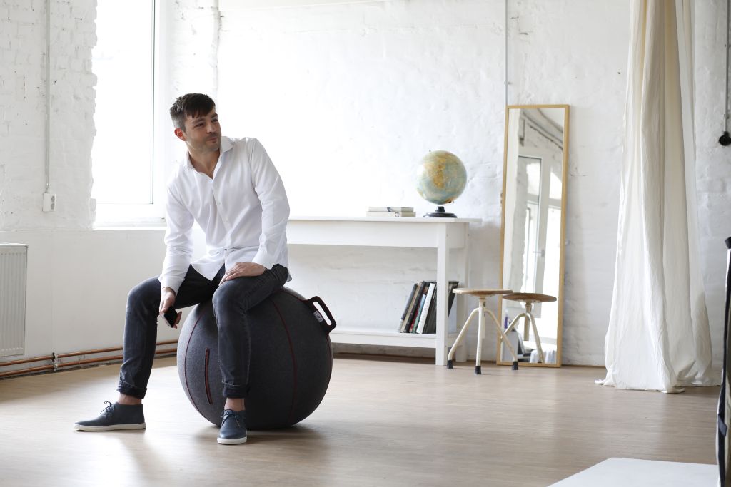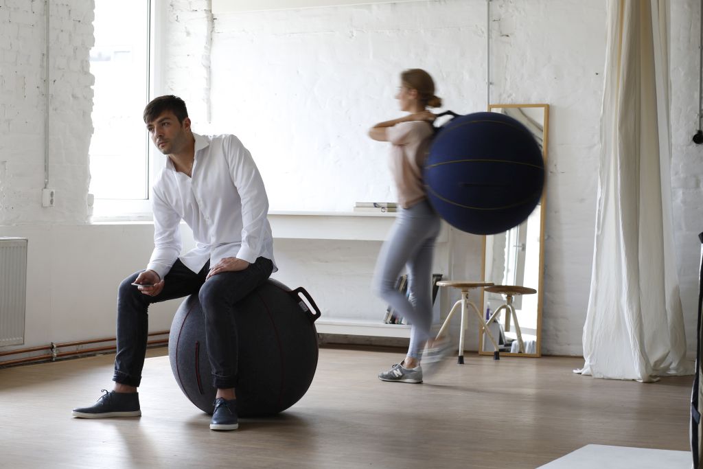 VLUV est un ballon de siège sain et élégant. Son design ergonomique vous permet de vous asseoir droit et confortablement tout en traitant vos e-mails. En alternant le ballon Vluv avec votre chaise de bureau pendant un maximum de 3 heures par jour, vous stimulez votre circulation sanguine et entraînez les muscles de votre dos, de votre bassin et de votre nuque.