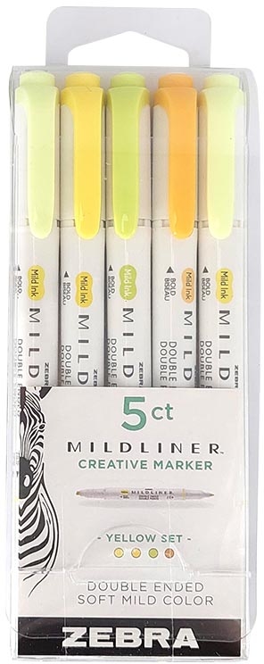 ZEBRA MILDLINER markeerstift, dubbele punt, Yellow, etui van 5 stuks, in geassorteerde kleuren
