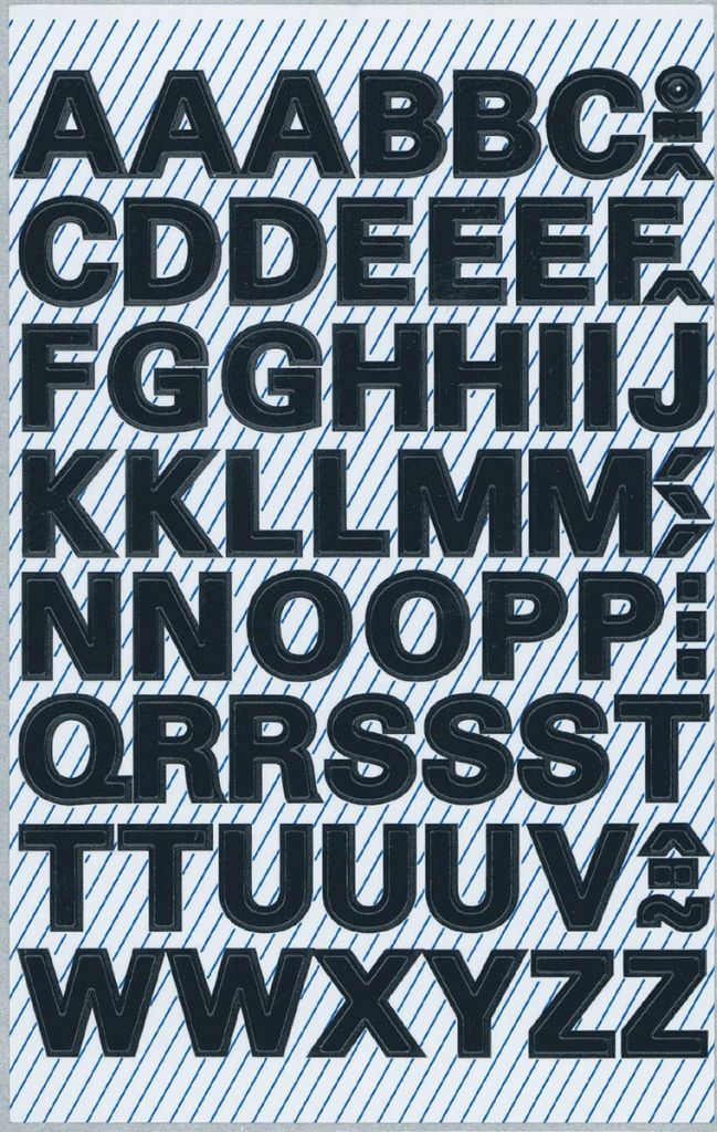 - A-Z, hauteur des lettres: 9,5 mm, 2 feuilles, noir, film résistant à l'humidité