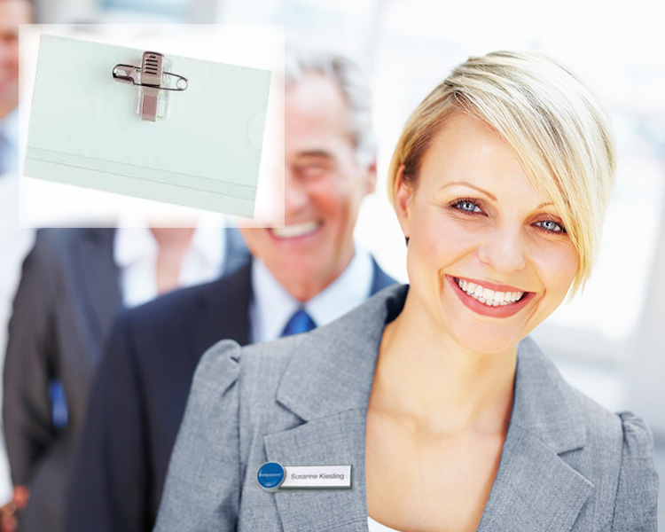 | Indien u voorkeur uitgaat naar een naambadge met een clip en speld, kunnen wij u ook hierin een aanbod presenteren. Via deze handige badges is het eenvoudig om de verschillende deelnemers meteen correct aan te spreken. Dit geeft een persoonlijk en betrokken gevoel bij uw publiek. | ![]() |