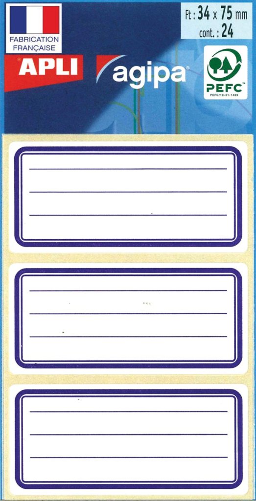 - Witte zelfklevende etiketten met een blauwe rand