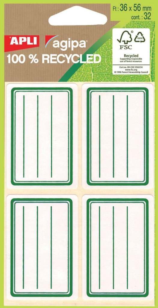 Agipa groene schooletiketten pak van 32stuk - 36x56mm
