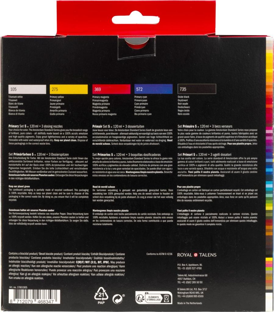 Amsterdam acrylverf primair 120 ml, 5 tubes + 3 tuiten