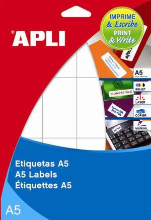 Apli Etik. A5, Print & Write, 180 stuks, 34 x 67 mm, wit 12/blad