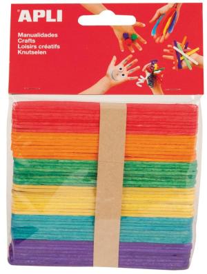 Apli gekleurde houten sticks, pak van 50 stuks