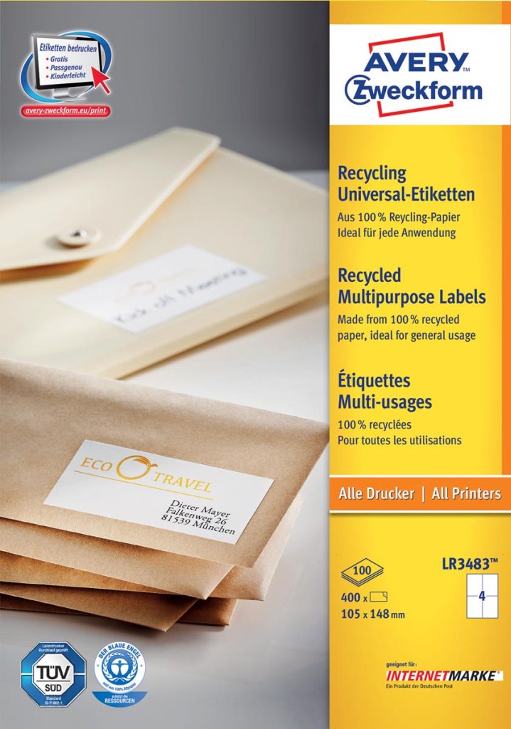 Avery etiketten ft 105 x 148 mm, 400 st, 4 /blad