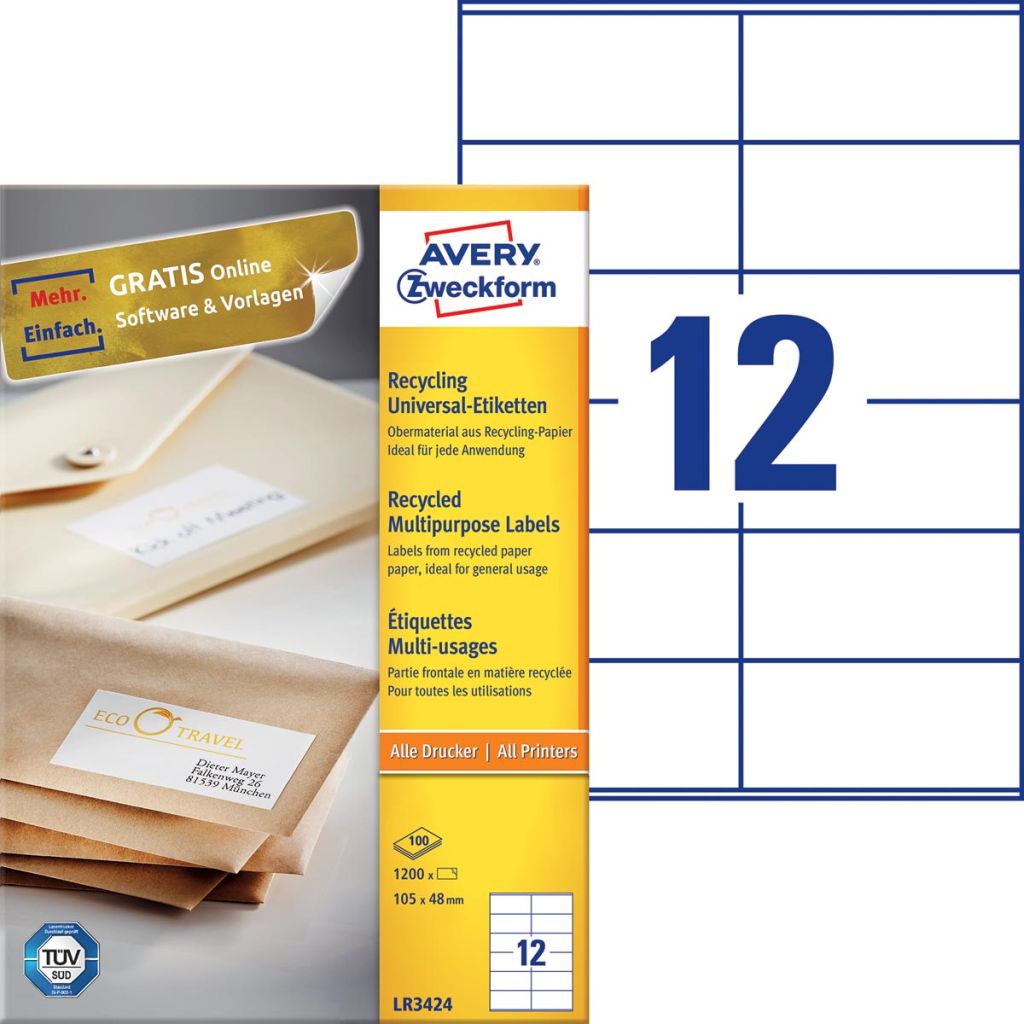 Avery etiketten ft 105 x 48 mm, 1.200 st, 12 /blad