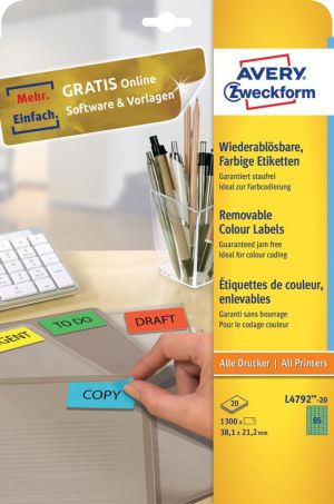 Avery gekleurde etiketten ft 38,1 x 21,2 mm (b x h), afneembaar, groen, 1300 stuks, 65 per blad