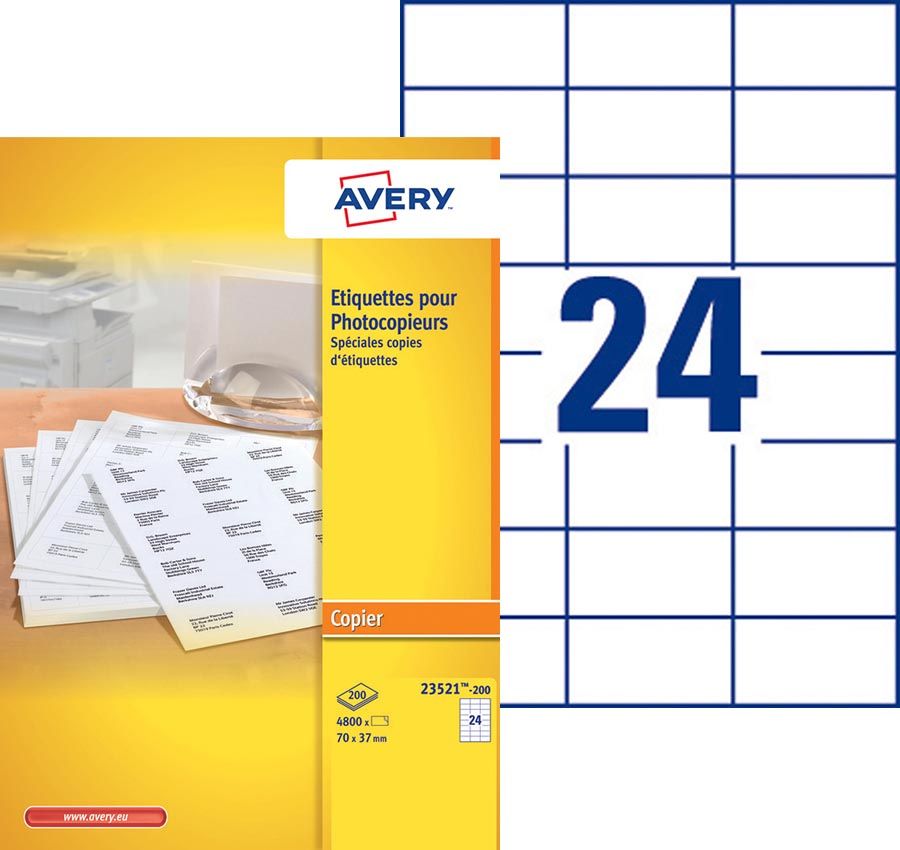 Avery Kopieeretiketten 70 x 37 mm wit (200 vel)