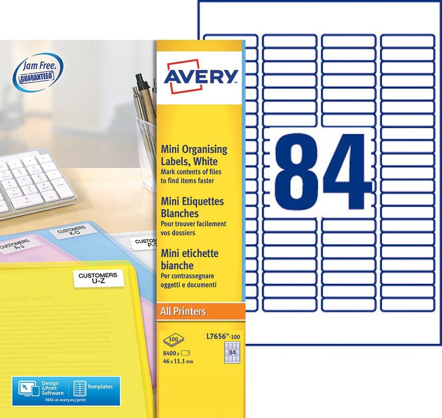 Avery L7656-100 mini etiketten ft 46 x 11,1 mm (b x h), wit, doos 8400 stuks