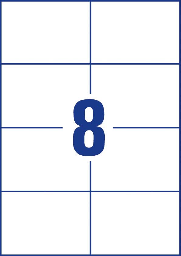 - Specificaties: Quickpeel: eenvoudig etiketten verwijderen van het blad Voor kopieermachines, laser- en inkjetprinters Met rechte hoeken Ft 21 x 29,7 cm (A4) FSC-gecertificeerd ft 105 x 74 mm, 800 stuks, 8 per vel, doos van 100 vel