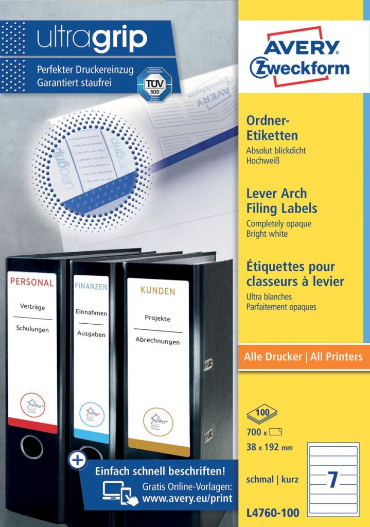Avery Zweckformft L4760-100 ordnerrugetiketten ft 192 x 38 mm (b x h), 700 etiketten, wit