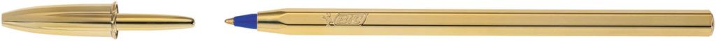 Bic balpen Cristal Medium, gouden lichaam, blauwe inkt, doos van 20 stuks