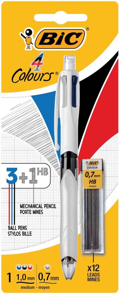 Bic Colours 3 + 1 HB 4-kleurenbalpen, medium, 3 klassieke inktkleuren en een vulpotlood 0,7 mm HB, op bli