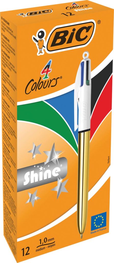 Bic Colours Shine 4-kleurenbalpen, medium, klassieke inktkleuren, lichaam goud