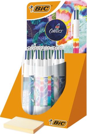 Bic Colours Tie-Dye Botanical 4-kleurenbalpen, medium, klassieke inktkleuren, display van 30 stuks