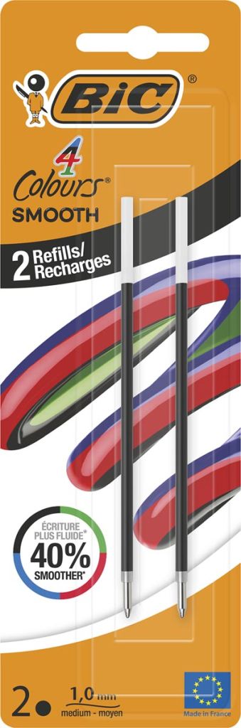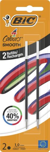 BIC vulling voor balpen 4 Colours Smooth, medium, blister van 2 stuks, zwart