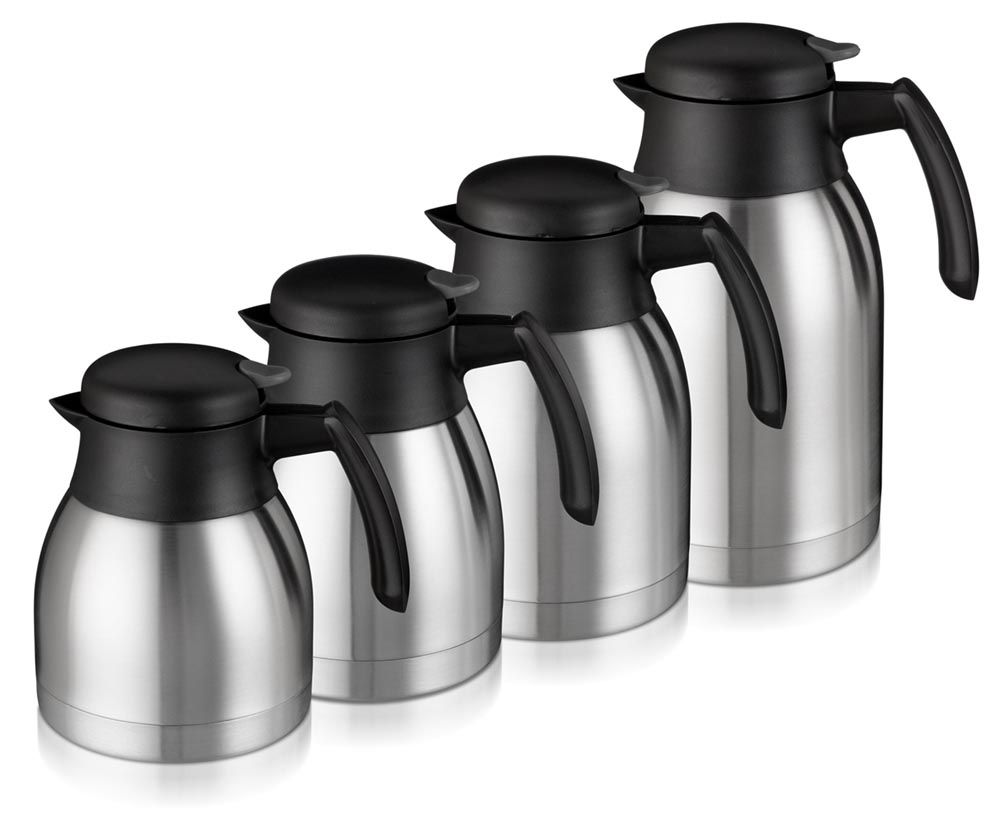 - Dubbelwandige thermoskan uit roestvrij staal Te gebruiken met vele koffiemachines Kleur: zwart inhoud: 1 l