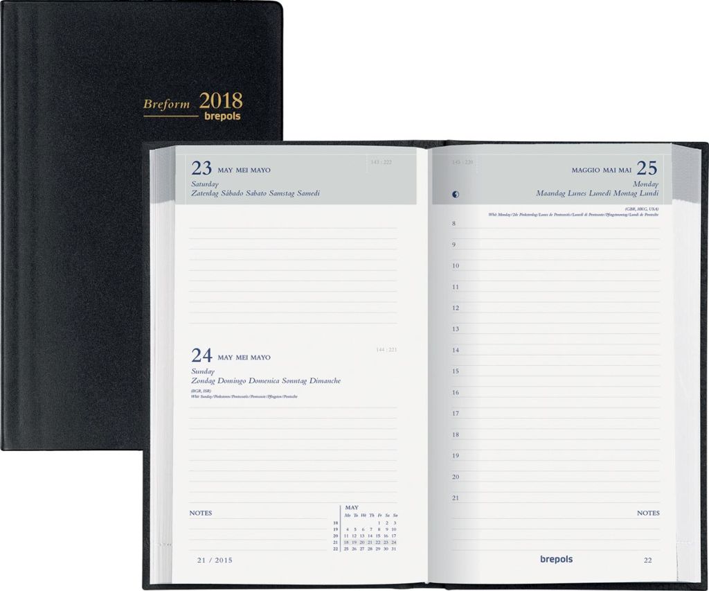 - 1 dag per pagina Uurindeling (8u - 21u) 6-talig Boekgebonden Gelijnd Wit papier van 60 g/m² 336 pagina's Kaft uit glad PVC met zijdeglans Met scheurhoekjes Ft 100 x 165 mm Seta, zwart