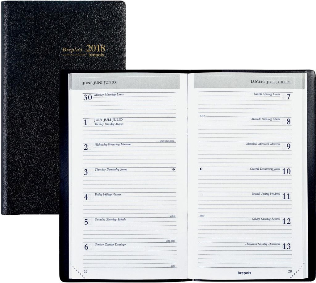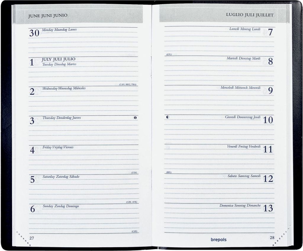 - 1 week per pagina 6-talig Boekgebonden Wit houtvrij papier van 60 g/m² Met scheurhoekjes Ft 92 x 160 mm Certificaat: FSC Mix Genova, kaft uit fijn generfd PVC, zwart