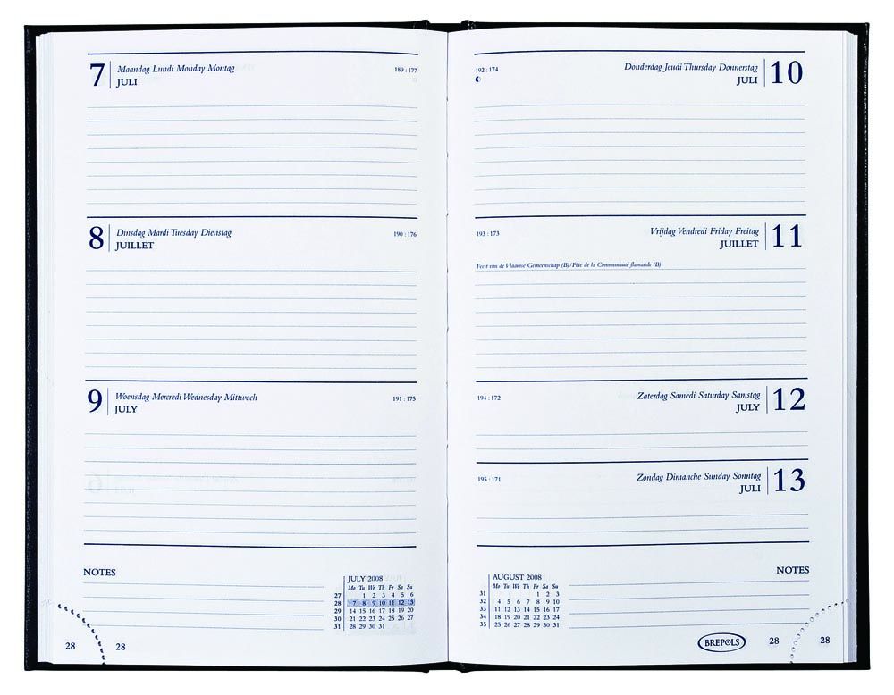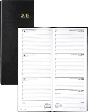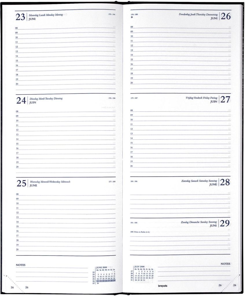 - 1 week per 2 pagina's Uurindeling (8u - 20u) 4-talig Boekgebonden Wit houtvrij papier van 70 g/m² 144 pagina's Met scheurhoekjes Kaft uit effen kunstleder Ft 128 x 330 mm Lima, zwart