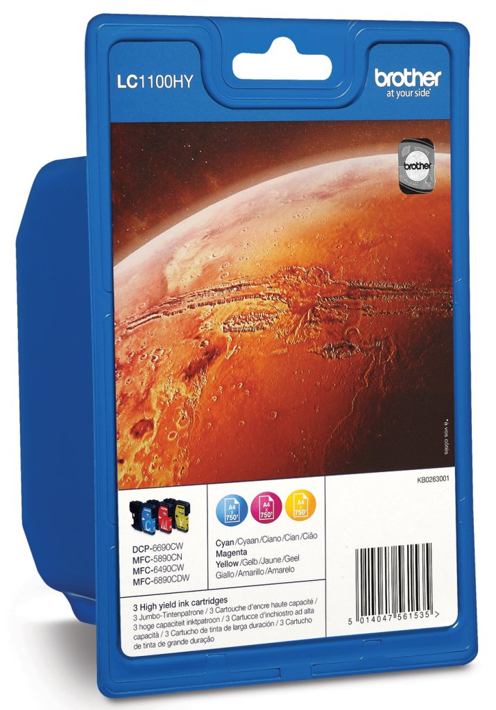 Voordeel blister verpakking met de drie 'extra inhoud' kleurencartridges LC-1100HYC, LC-1100HYM en LC-1100HYY
