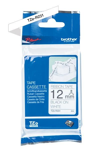 Brother TZE-R231 - 12mm - Zwarte tekst op wit glanzend lint