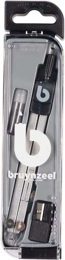 - 3-delige passerdoos: 1 passer, 1 kokertje potloodstiften en 1 universeel inzetstuk
