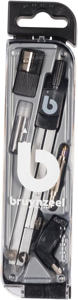 - 5-delige passerdoos: 1 passer, 1 kokertje potloodstiften, 1 slijper, 1 universeel inzetstuk en 1 trekpen