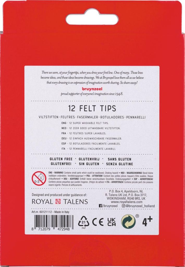 - Geschikt voor kinderen vanaf 5 jaar Uitwasbaar uit de meeste textielsoorten Inkt op waterbasis Droogt niet uit Glutenvrij In een kartonnen ophangetui 12 stiften
