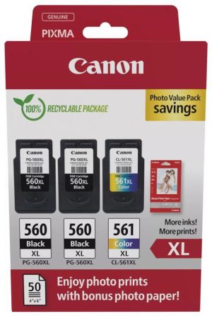 Canon photo value pack 2 x PG-560XL + 1 x CL-561XL, 300 - 400 pagina's, OEM 3712C012, 4 kleuren