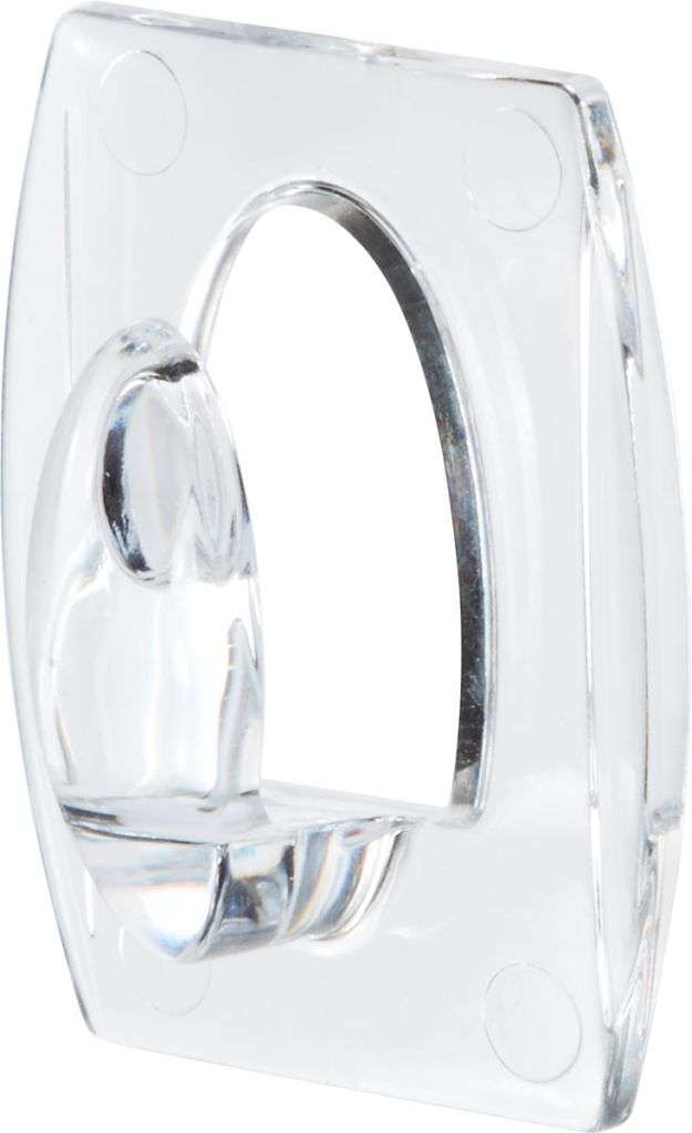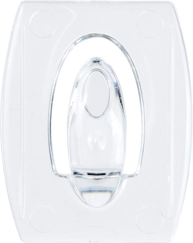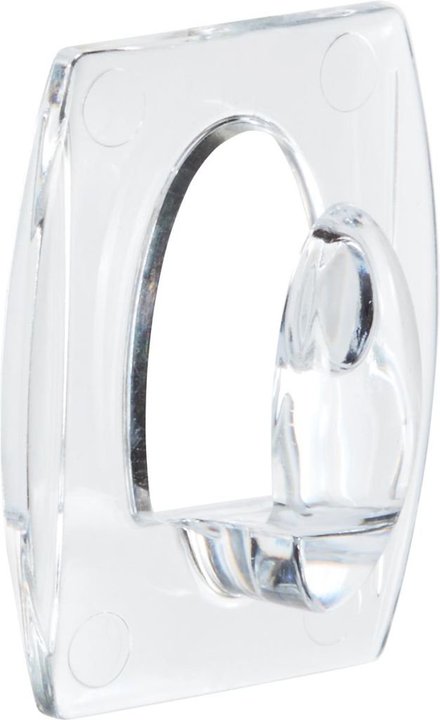 - Kleine decoratiehaakjes Transparante kunststof Draagkracht tot 225 g Op blister 6 haakjes en 8 kleefstrips
