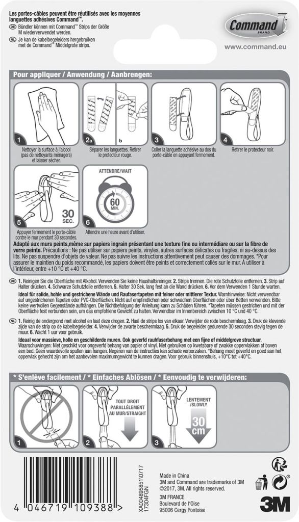 - Kleefstrips kunnen verwijderd worden zonder de muur te beschadigen