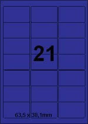 DBS etiketten 63,5 x 38,1 mm, 21 per blad, blauw, 200 vel