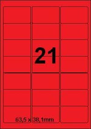 DBS etiketten 63,5 x 38,1 mm, 21 per blad, rood, 200 vel