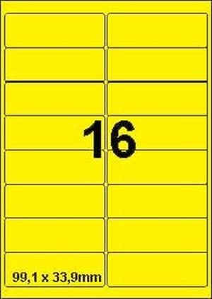 DBS etiketten 99,1 x 33,9 mm, 16 per blad, geel, 200 vel