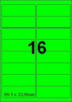 DBS etiketten 99,1x33,9mm, 16 per blad, fluo groen, 200 vel