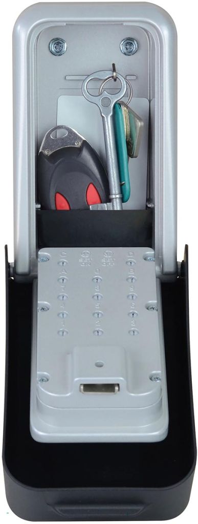 - Ook heel handig voor professionele toepassingen Met cijferslot Voorbereid voor muurverankering Kleur: grijs/zwart Master Lock 5426, buitenft 10,3 x 17,3 x 7,5 cm (b x h x d), binnenft 6,6 x 13 x 2,2 cm (b x h x d)