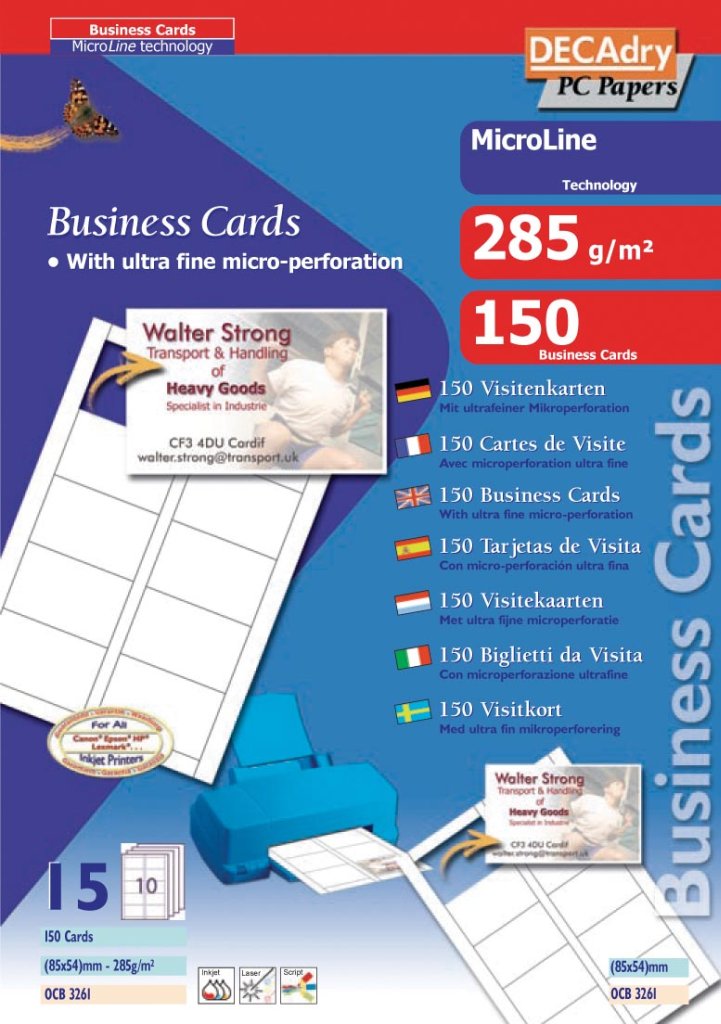 Decadry visitekaarten ft 85 x 54 mm, 285 g/m², 150 kaartjes