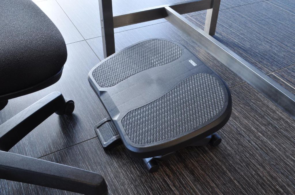 - Een robuuste, in hoogte en hoek verstelbare voetensteun met rubberen antislipmat op platform