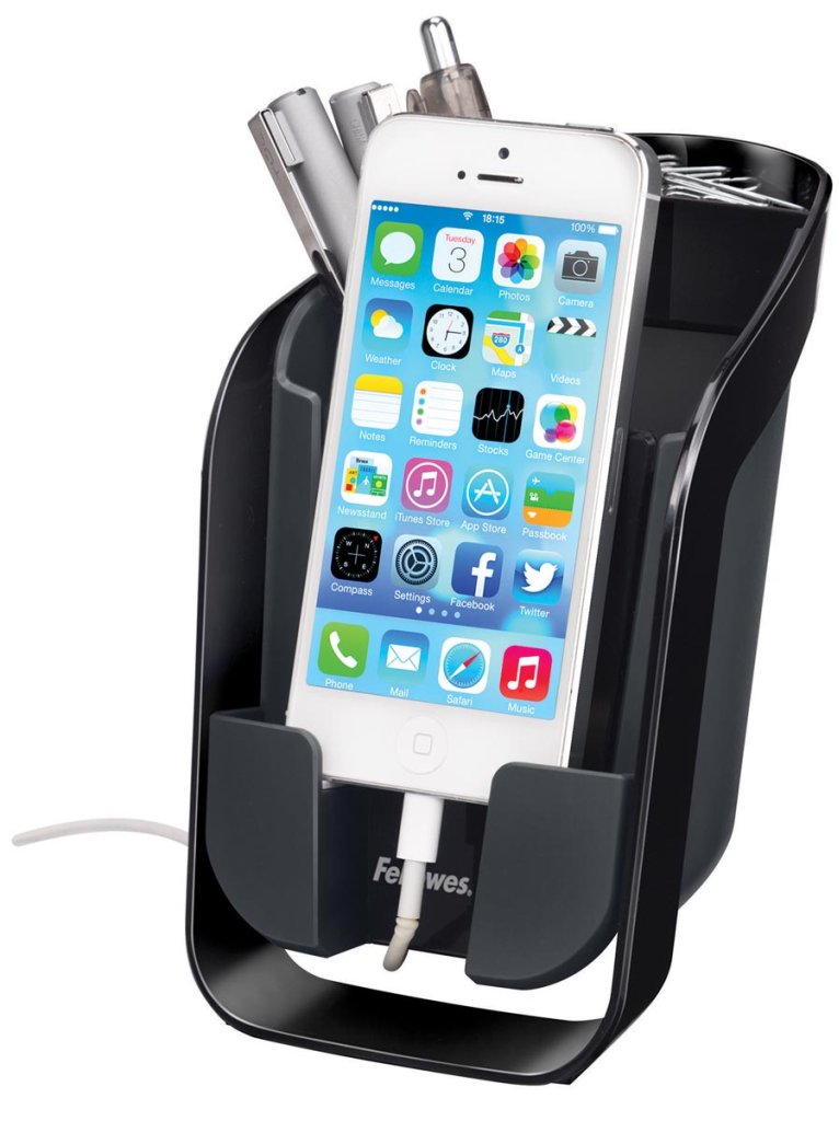Plaatst uw telefoon in een comfortabele kijkhoek en beschikt over een opening voor de lader.