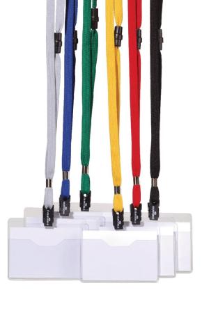 - Het naambordje van hoogtransparante hardfolie wordt aan een 10 mm brede textielband met veiligheidssluiting bevestigd
