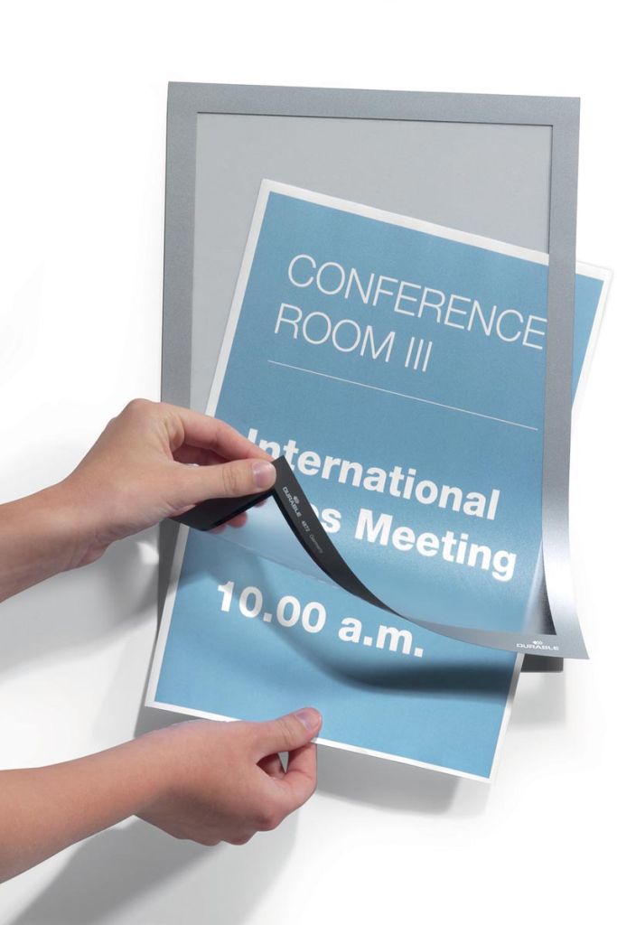 - Zelfklevend kader, bestaande uit twee transparante folies die samen worden gehouden door de magnetische rand