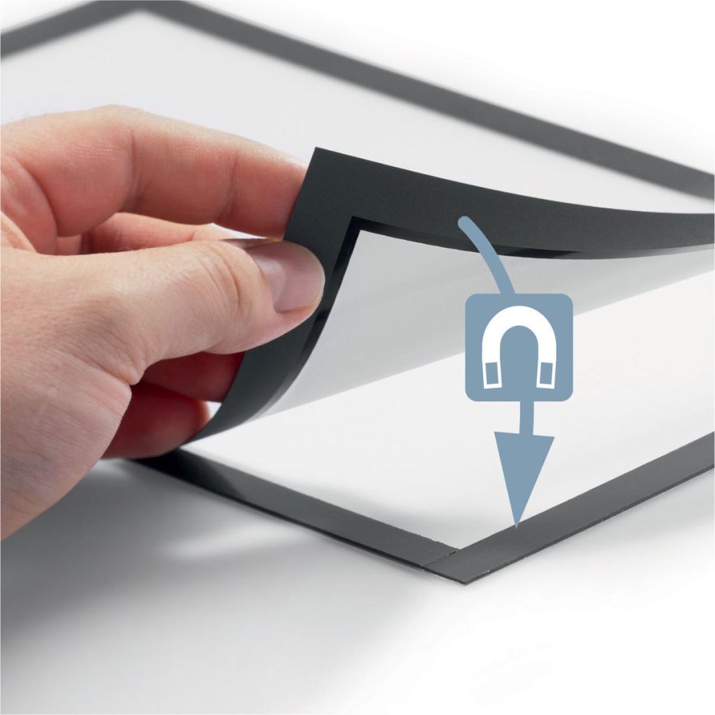 - Zelfklevend kader, bestaande uit twee transparante folies die samen worden gehouden door de magnetische rand