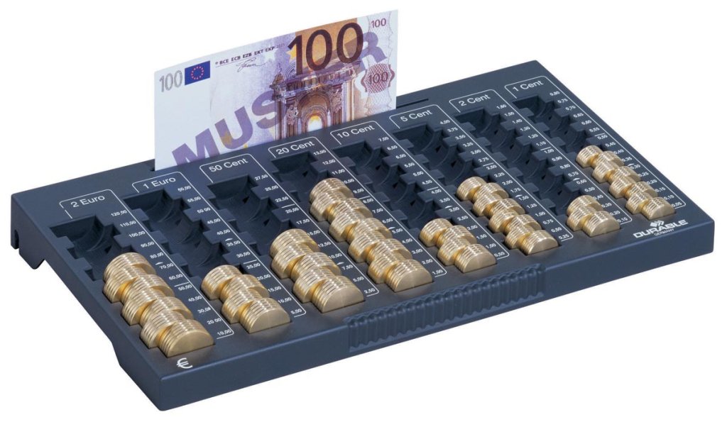 - Eenduidige aanduidingen telkens per vijf munten, geven een exact overzicht van de hoeveelheid munten