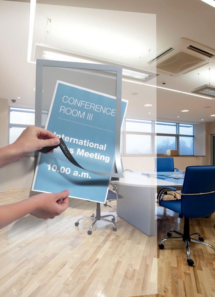 - Dankzij de magnetische rand kan de gegeven informatie gemakkelijk worden vervangen