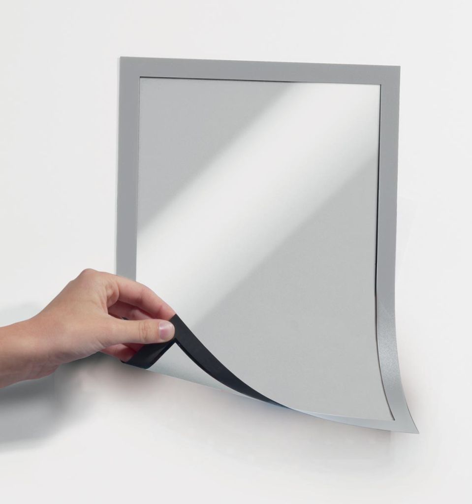 - Zelfklevend kader, bestaande uit twee transparante folies die samen worden gehouden door de magnetische rand