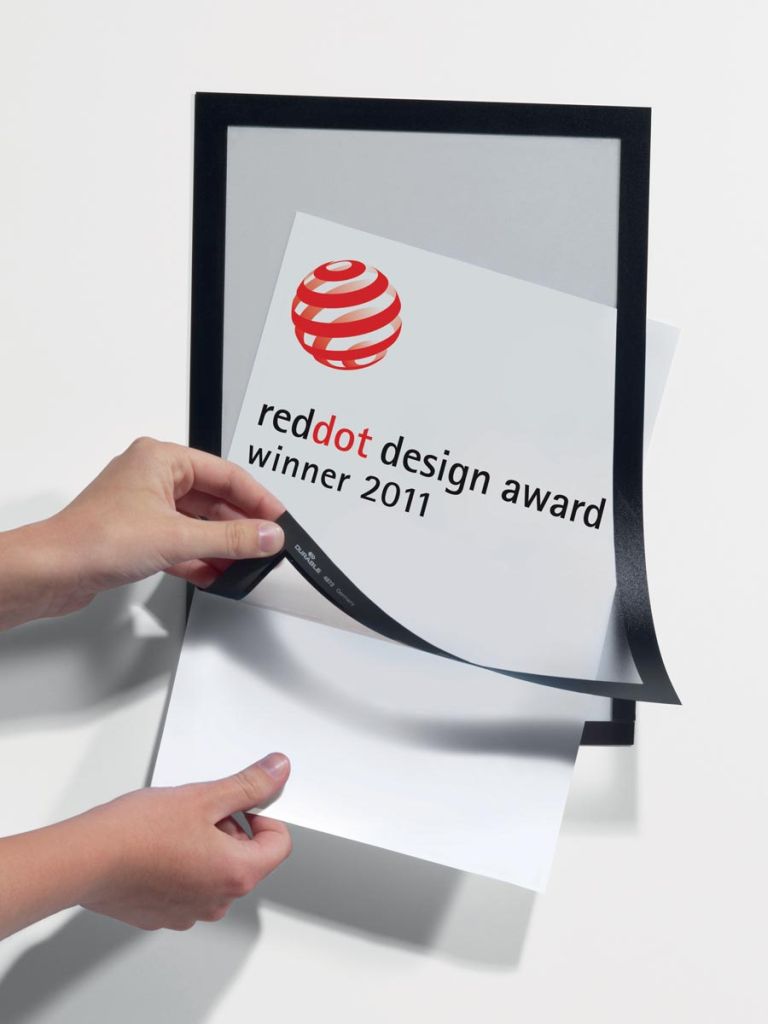 - Zelfklevend kader, bestaande uit twee transparante folies die samen worden gehouden door de magnetische rand